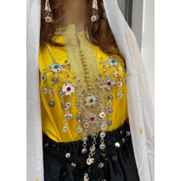 Une tenue traditionnelle élégante, ornée de motifs authentiques, idéale pour refléter la richesse du patrimoine berbère.